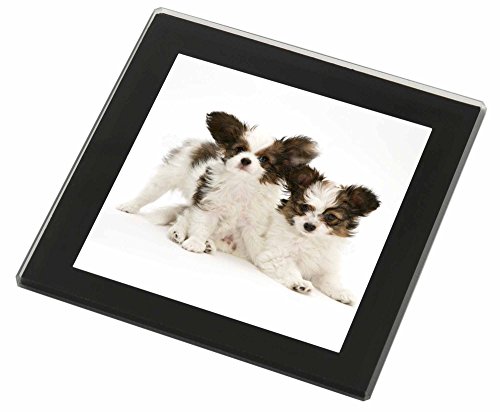 Papillon Hunde Glasuntersetzer mit schwarzem Rand Weihnachtsgeschenk