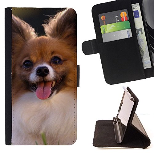 Momo Phone Case / Prämie Schwarz Flip Brief Tasche Klapp Leder Kartenhalter Schutz Hülle Case Cover – Papillon Chihuahua-Hund Klein Hundeartige – Apple Iphone 5 / 5S