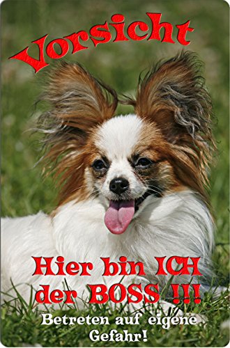 +++ PAPILLON Kontinentaler Zwergspaniel – Metall WARNSCHILD Schild Hundeschild Sign – PAP 07 T7