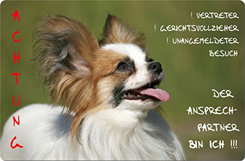 +++ PAPILLON Kontinentaler Zwergspaniel – Metall WARNSCHILD Schild Hundeschild Sign – PAP 06 T10